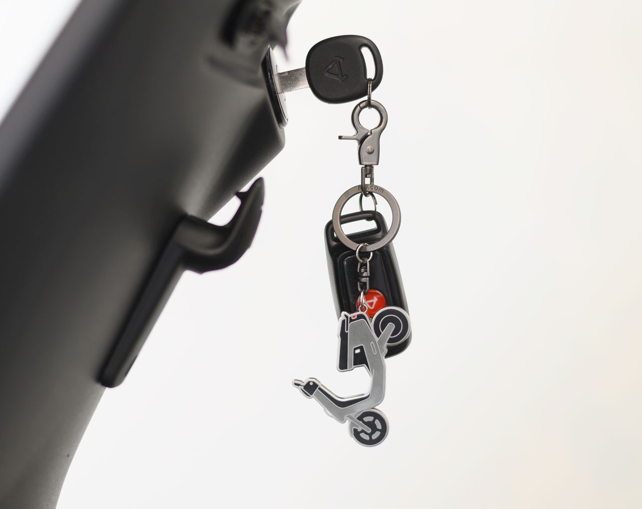 En nyckelring i form av en silverfärgad NIU M+