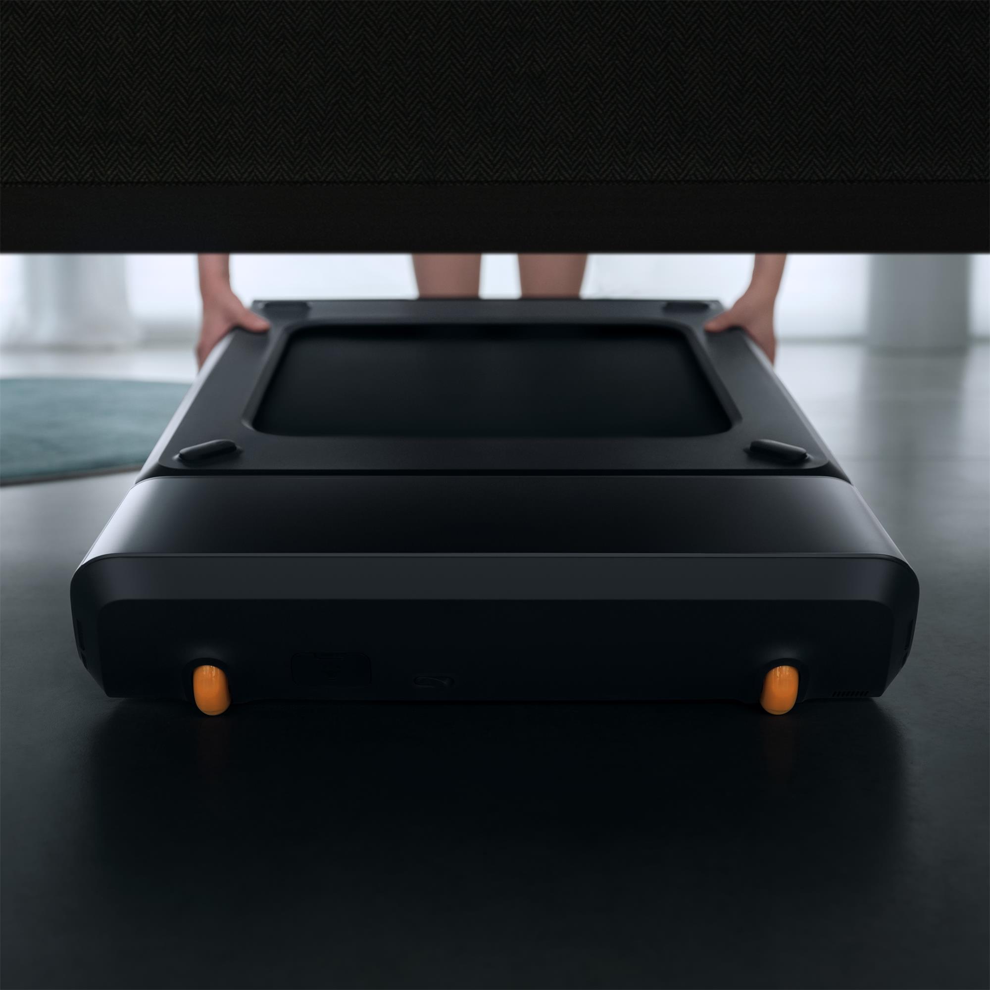 När du inte använder löpbandet kan det fällas ihop för att göra det lättare att förvara. Tjockleken på A1 pro är bara 12,9 cm! A1 pro är också utrustad med två hjul som gör det enkelt att flytta den var som helst.